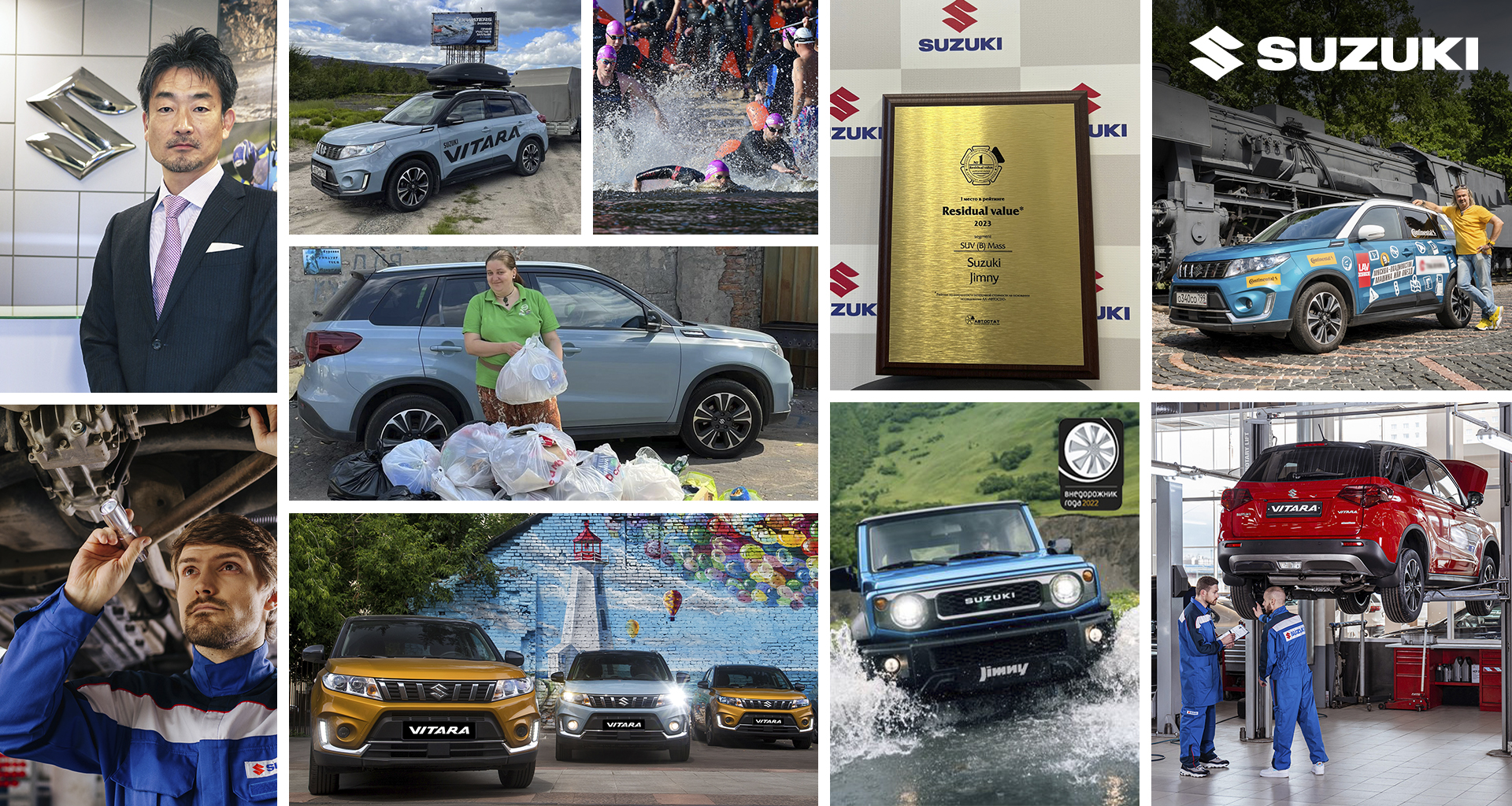 Компания Suzuki оказала поддержку штабу международного спортивного чемпионата X-Waters. В рамках партнёрства на различных этапах соревнований Suzuki предоставляла автомобиль Vitara организаторам мероприятий для обеспечения удобства, безопасности, максимальной мобильности и скорости. Suzuki Vitara оснащена системой полного привода ALLGRIP Select, которая отлично справлялась со сложными дорожными покрытиями при любых погодных условиях. На главном старте серии заплывов российского этапа X-Waters Volga 2022, который также поддержала компания Suzuki, приняло участие 2 000 участников из 16 стран и 80 городов России. Для организации точек старта на другом берегу Волги, встречи партнёров и коллег команда использовала Suzuki Vitara.