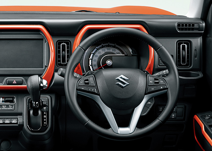 Suzuki Hustler занимает минимум места на парковке, в гараже, на дороге. Его габариты составляют всего 3395/1475/1665 мм (соответственно, длина, ширина и высота). При этом салон автомобиля довольно просторный и функциональный за счёт системы трансформации посадочных мест. Задние сиденья складываются в почти ровный пол, а спинка кресла переднего пассажира может превращаться в откидной столик.