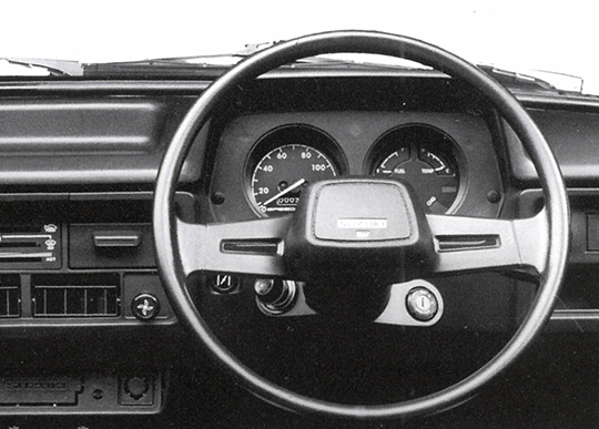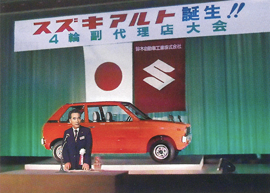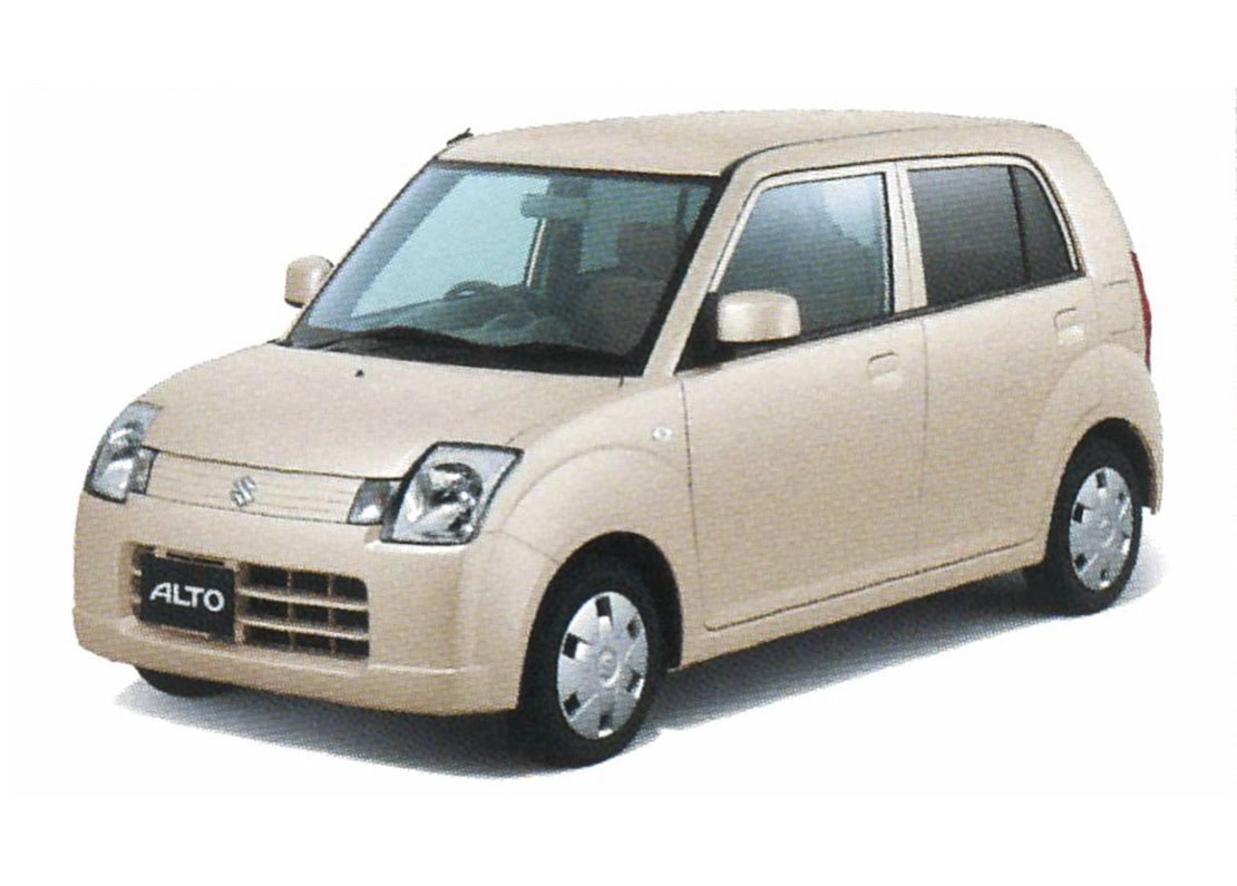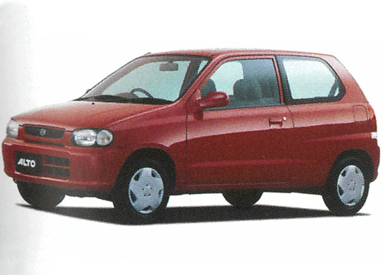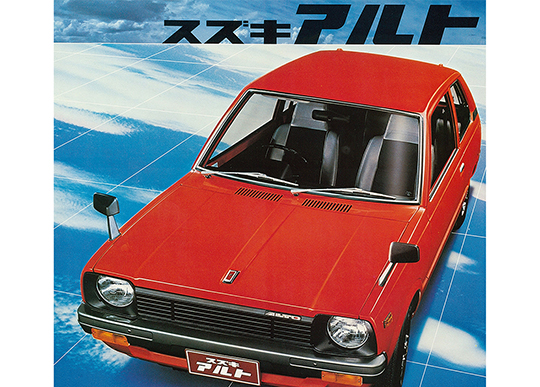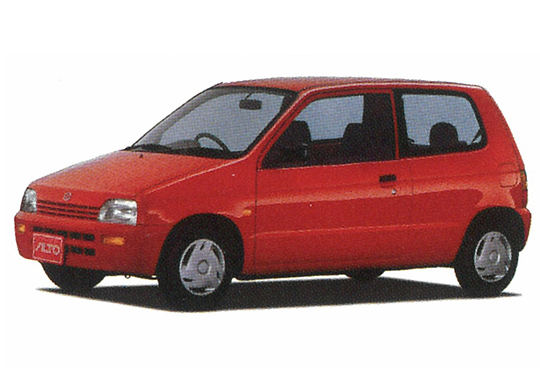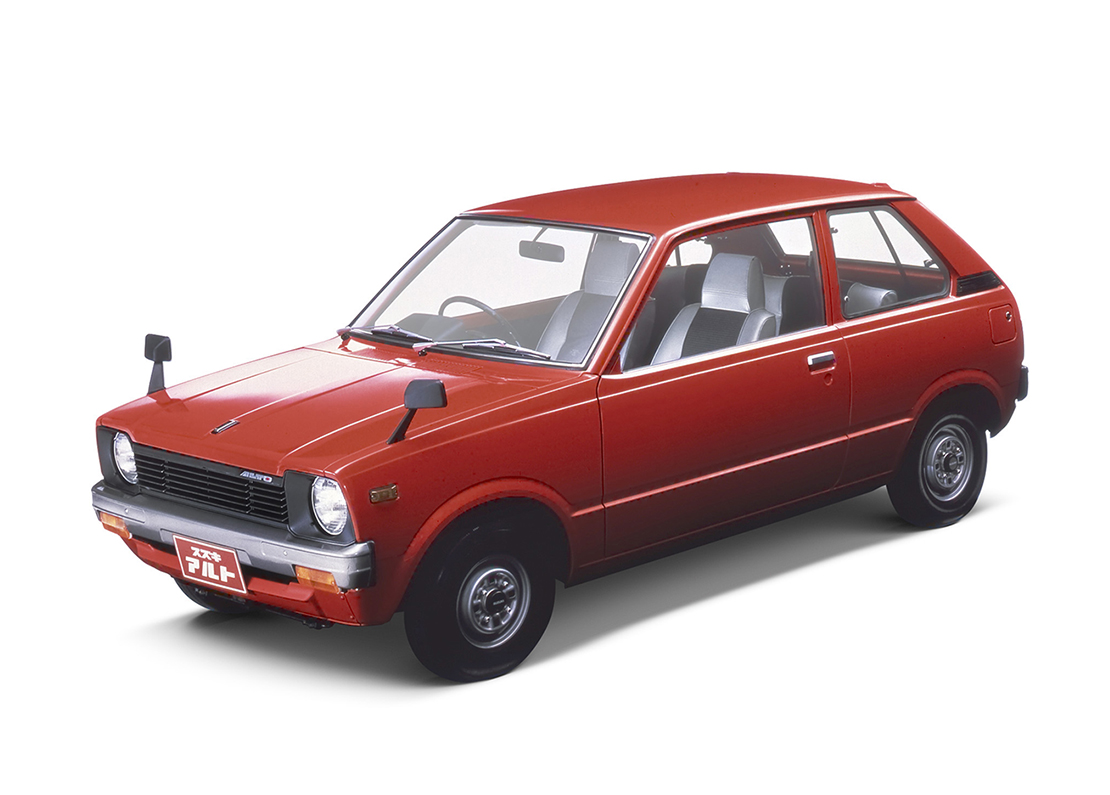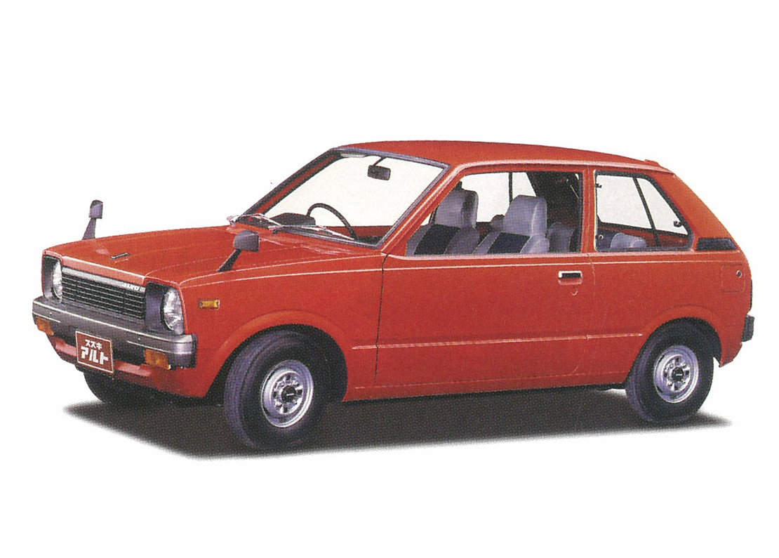 В мае 1979 г. компания Suzuki выпустила Alto – двухместный переднеприводный минивэн, оснащённый 2-тактным 3-цилиндровым двигателем. Suzuki Alto был намеренно предложен в одной базовой комплектации, чтобы минимизировать различия в оснащении и, тем самым, снизить затраты. Автомобиль был доступен исключительно с механической коробкой передач и в стандартном исполнении включал только отопитель. Дополнительное оборудование, такое как прикуриватели или радиоприёмник, предлагалось в качестве дополнительной опции. Оснащение модели также было минимальным: в автомобиле была установлена простая цельная пластиковая приборная панель; для усиления спинки заднего сиденья использовались фанерные панели; бамперы были изготовлены из стали и окрашены в серый цвет для снижения затрат; стеклоомыватели были не моторизованными, а приводились в действие ручным насосом; там, где на дверях можно было обойтись без отделки, были установлены окрашенные металлические панели, а замочные скважины для дверных замков устанавливались только на водительской двери. Благодаря упрощению процесса проектирования, используя практичные решения, Suzuki удалось сохранить низкую стоимость Alto.